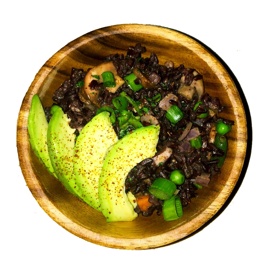 WILD FRIED RICE WITH MUSHROOMS GREEN ONIONS AND AVOCADOS